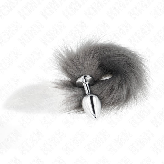 KINK - PLUG ANAL TAMANHO M 8 X 3,5 CM COM CAUDA SINTÉTICA 40 CM CINZA