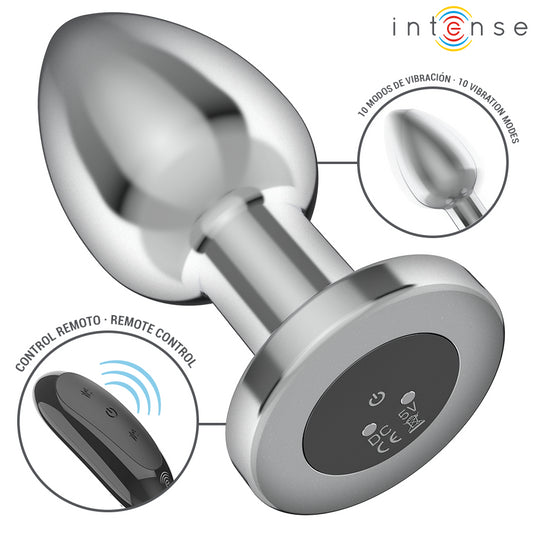 INTENSE - PLUG ANAL 10 VIBRAÇÕES DILDO DE METAL COM CONTROLE REMOTO M