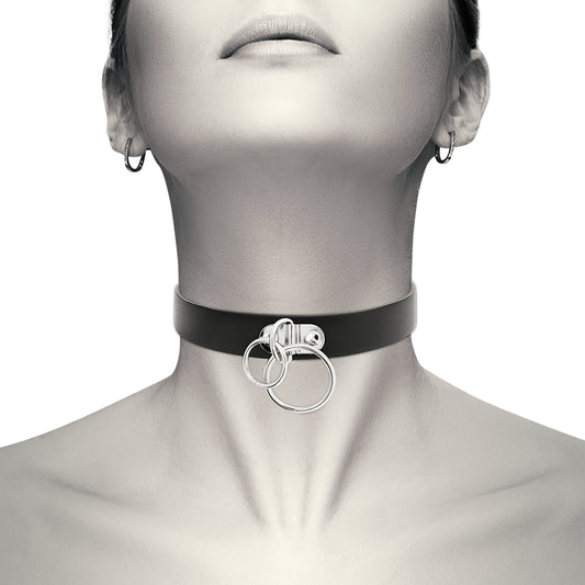 COQUETTE CHIC DESIRE - GARGANTILHA DE COURO VEGANO DE ANEL DUPLO